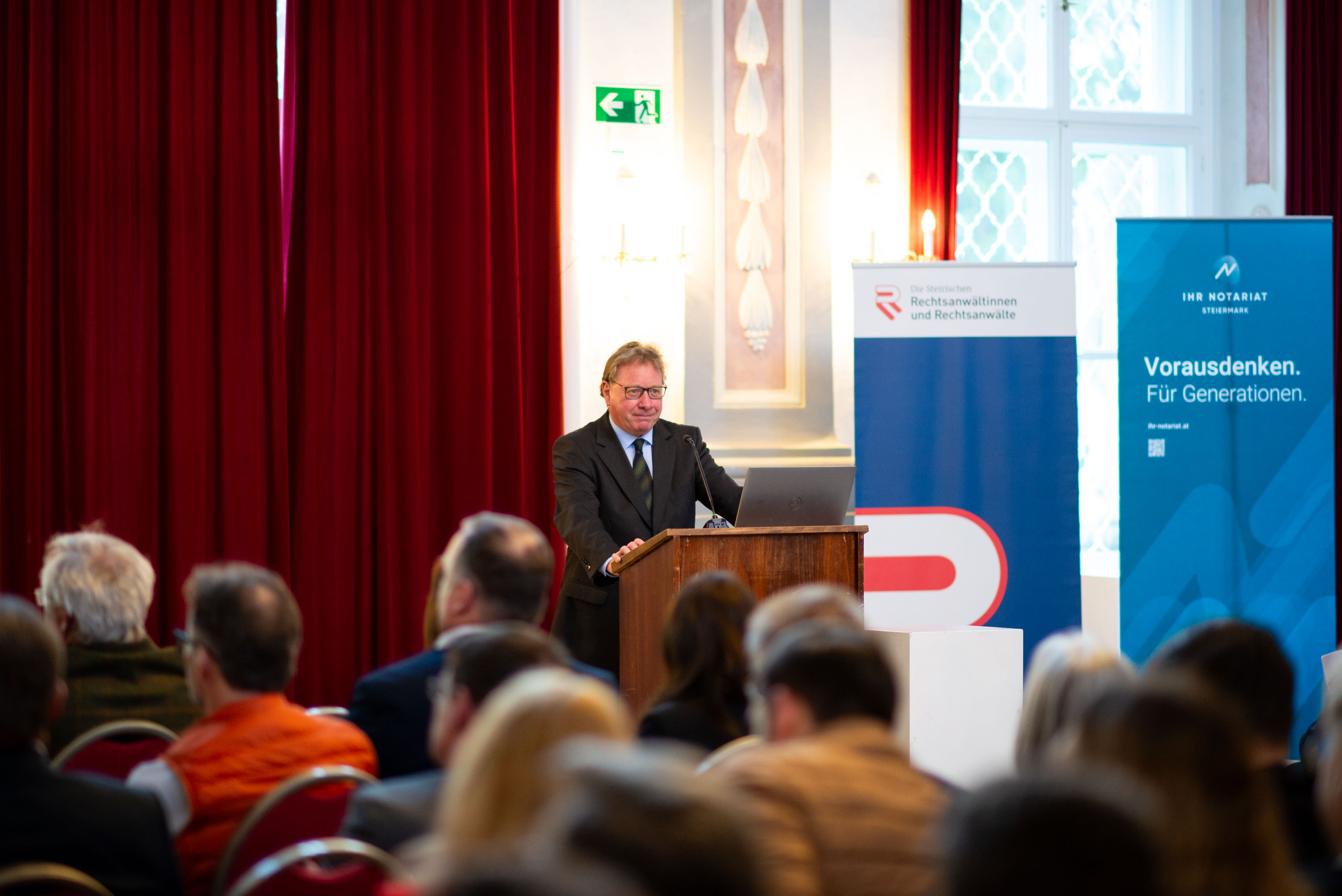 Im Anschluss nahm Senatspräsident Musger die Teilnehmerinnen und Teilnehmer mit auf einen – wie er es selbst bezeichnete – „Streifzug“ durch das Erbrecht: Anhand ausgewählter Rechtsprechung zeichnete er den Weg vom Erbfall bis zur Einantwortung nach und erläuterte dabei zentrale Fragestellungen. Besonderes Interesse fand der Auskunftsanspruch nach § 786 ABGB iVm Art XLII EGZPO, insbesondere im Zusammenhang mit der Hinzurechnung bestimmter Schenkungen. Inhalt, Erfüllung und Durchsetzung dieses Anspruchs wurden näher beleuchtet. Der kurzweilige Vortrag wurde durch zahlreiche praxisnahe Fragen aus dem Publikum bereichert.