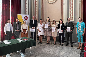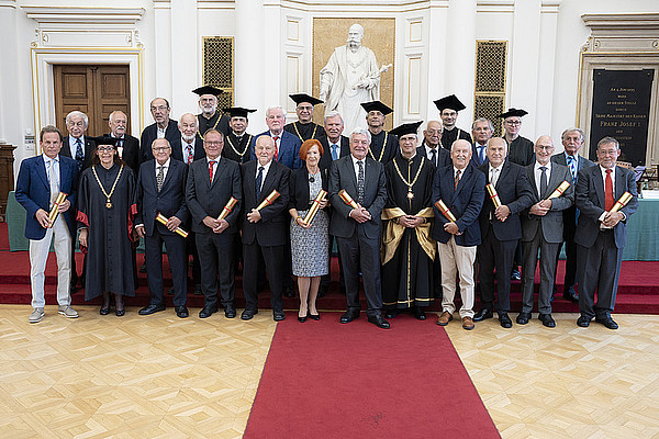 Ein Fundament für ihre steilen Karrieren legten sie mit ihrem Studium an der REWI Uni Graz. Acht unserer Absolventen und eine unserer Absolventinnen, die vor 50 Jahren das Jus-Doktoratsstudium abschlossen, wurden letzte Woche für ihre hervorragenden beruflichen Leistungen von der Uni Graz mit dem Goldenen Doktordiplom ausgezeichnet. Wo ihre Wege hinführten, zeigt eindrucksvoll, wie vielfältig die Türen sind, die sich mit dem Jus-Studium öffnen: Die Ausgezeichneten waren u.a. Diplomat und Hoher Repräsentant für Bosnien und Herzegowina, Präsident des Landesgerichtes für Strafsachen, Geschäftsführer des Grazer Congress oder Vizepräsidentin des Europäischen Komitees zur Verhütung von Folter und unmenschlicher und erniedrigender Behandlung und Strafe. Wer sich hinter diesen Funktionen verbirgt und weiters unter unseren neun vergoldeten Absolvent_innen war, lesen Sie hier.