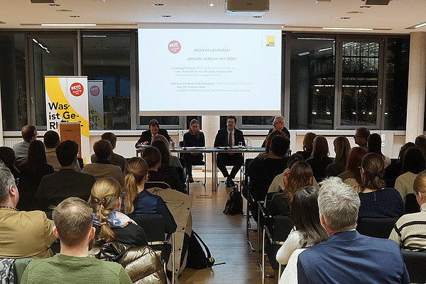 Bei der jüngsten Ausgabe von „REWI im Gespräch“ am 19. Jänner ging es um aktuelle Entscheidungen des Verfassungsgerichtshofs, die sich mit gewichtigen Fragen zweier sehr unterschiedlicher Thematiken beschäftigten: VfGH-Präsident Christoph Grabenwarter referierte über „Social Egg Freezing“ (Details unter diesem Link auf der VfGH-Website), Andreas Joham über die Kärntner „Windkraft-Volksbefragung“ (Link). Beide Themen wurden im Anschluss an die Vorträge auch mit dem Publikum lebhaft diskutiert. Fortsetzung (dann zu anderen Themen) folgt, denn: „REWI im Gespräch“ kehrt schon in Bälde zurück. Behalten Sie unsere Homepage im Auge - den aktuellen Veranstaltungskalender unserer Fakultät finden Sie hier.