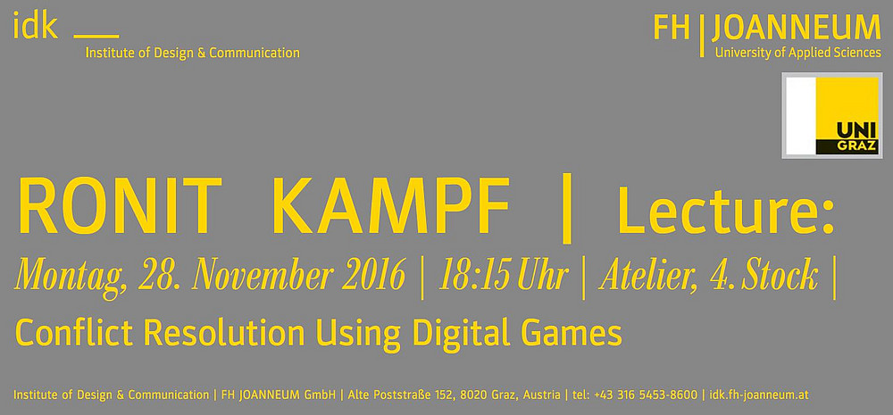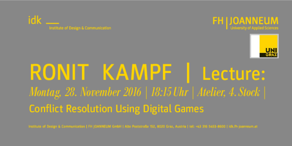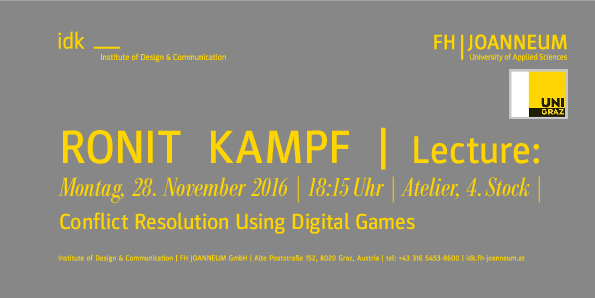 University of Graz Faculty of Law News Conflict Resolution Using Digital Games - Vortrag von Frau Dr.in Ronit Kampf am 28.11.2016