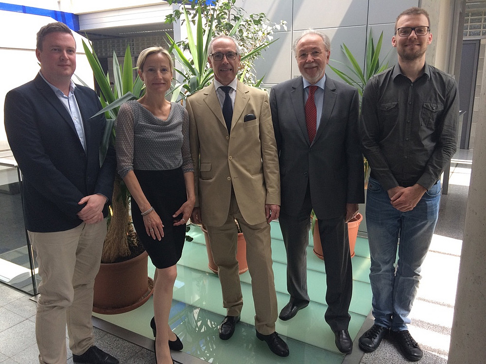 V.l.: Univ.-Prof. Dr. Thomas Garber, Univ.-Prof. Dr. Bettina Nunner-Krautgasser, RA Dr. Alexander Klauser, em.o.Univ.-Prof. Dr. Wolfgang Jelinek, Ass.-Prof. Dr. Philipp Anzenberger (Foto: Uni Graz/Höfler-Ritter)